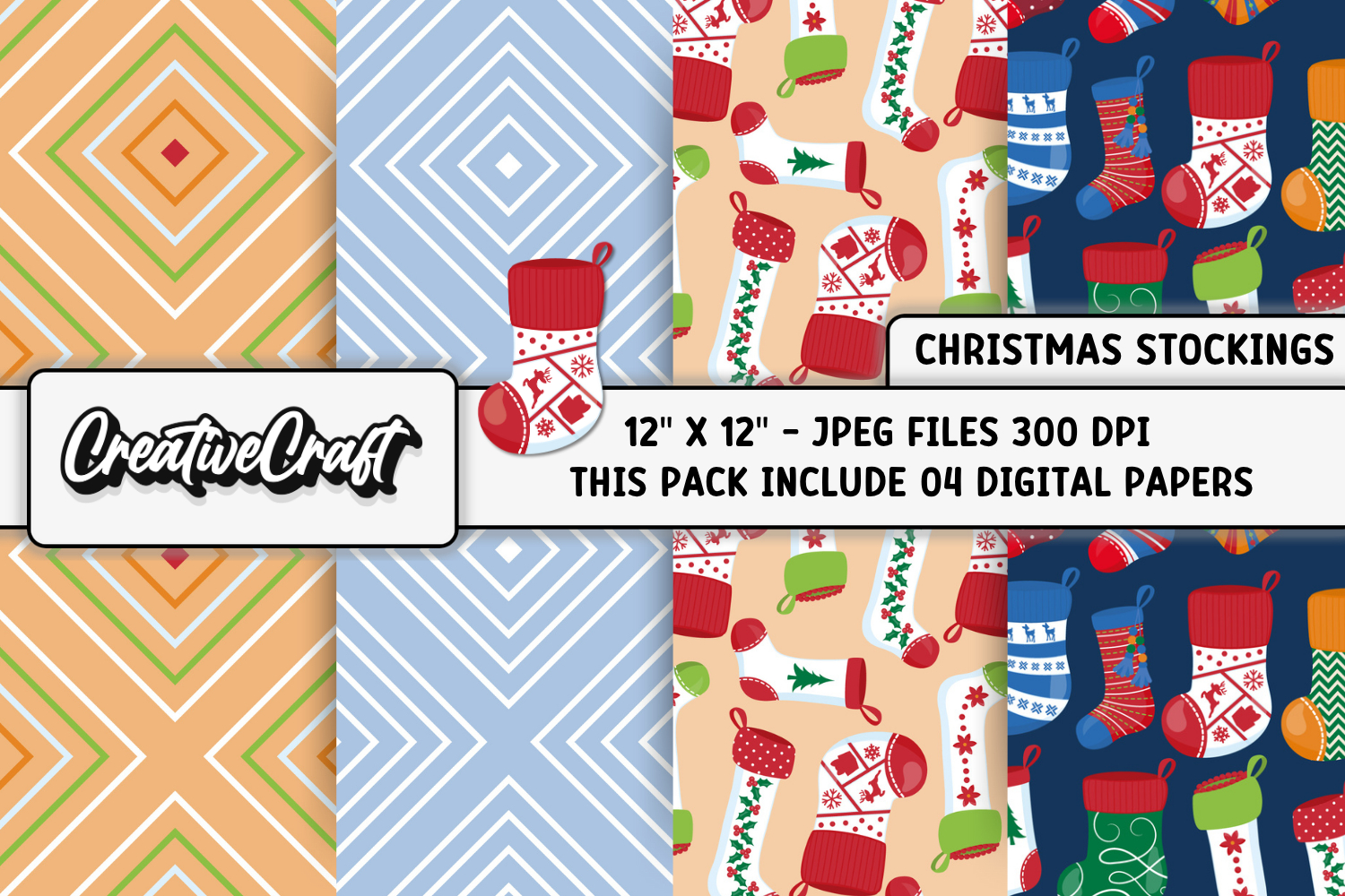 Christmas Stockings Digital Paper, christmas illustrations example image 1