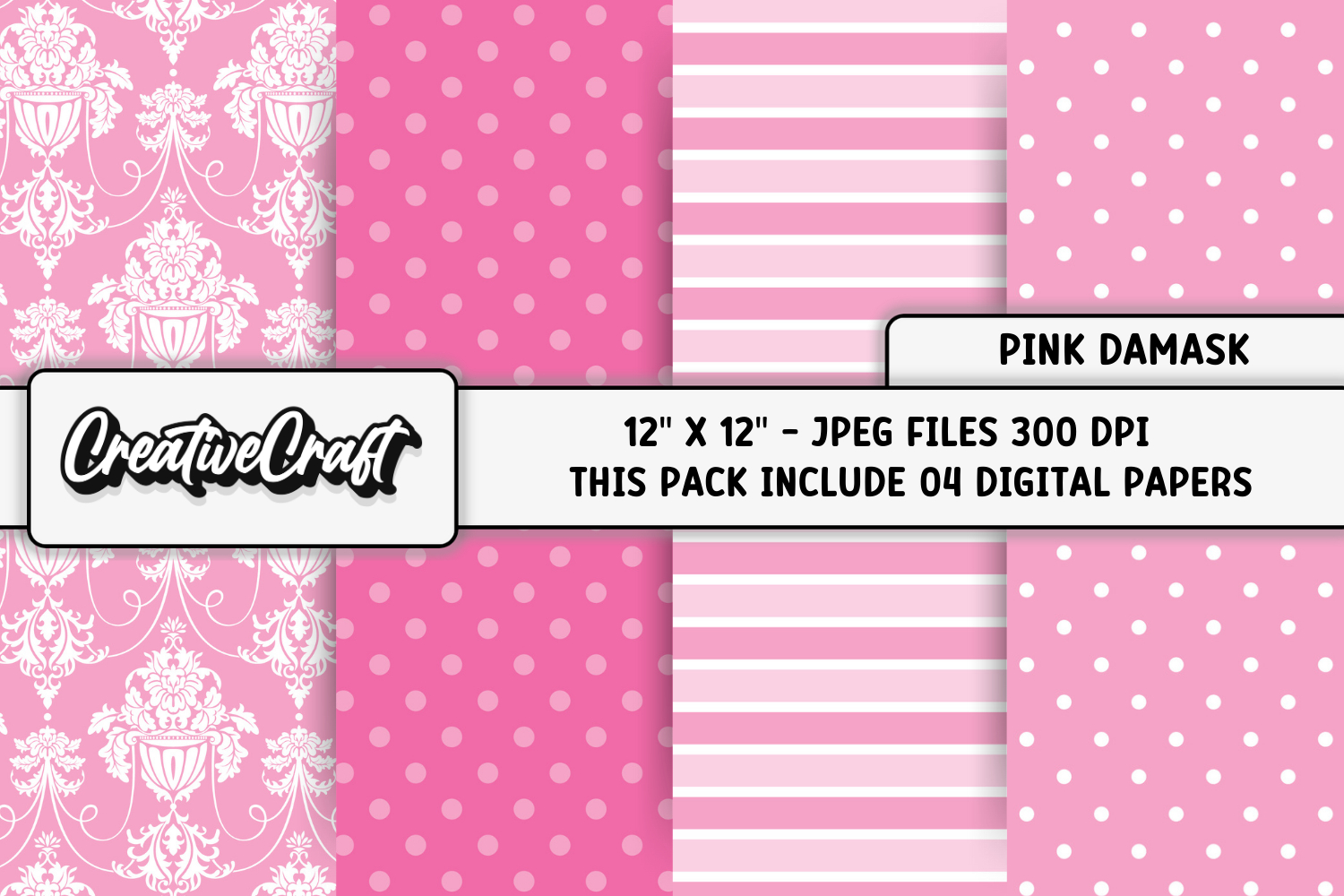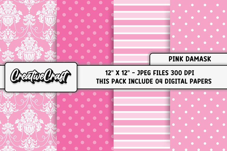The set contains Pink Damask papers designs.