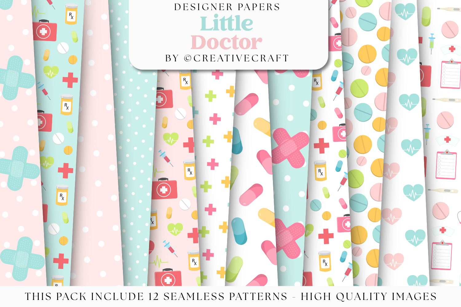 This cute Medicine seamless pattern set is perfect for all your crafts and projects.