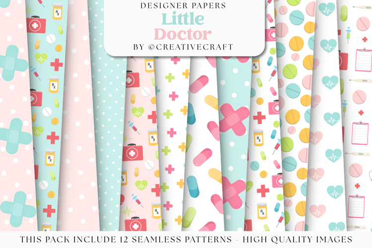 Seamless Patterns Hospital Doctor Medicine Digital Papers Health Care Medicament Backgrounds Designs Printables Papers Designs Little Doctor