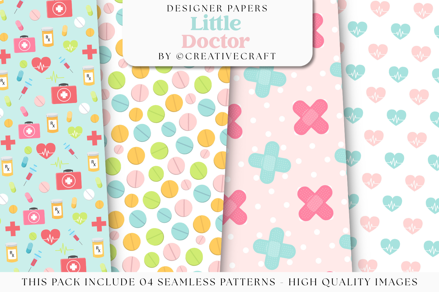 This cute Medicine seamless pattern set is perfect for all your crafts and projects.
