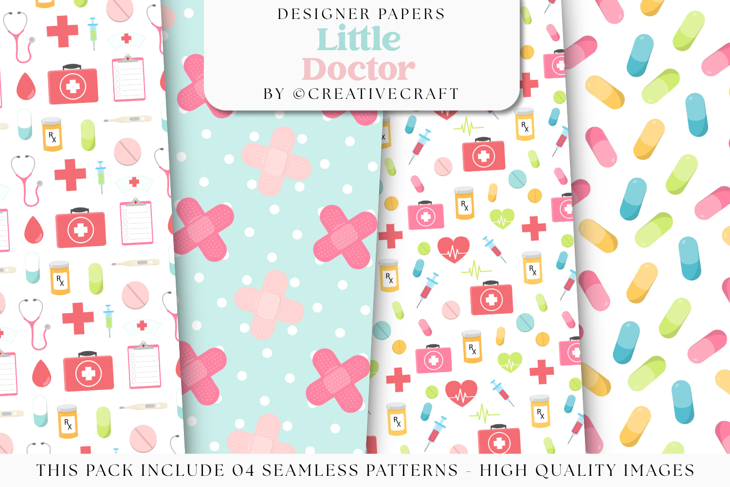 This cute Medicine seamless pattern set is perfect for all your crafts and projects.