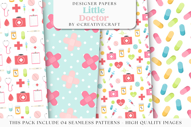 Seamless Patterns Hospital Doctor Medicine Digital Papers Health Care Medicament Backgrounds Designs Printables Papers Designs Little Doctor