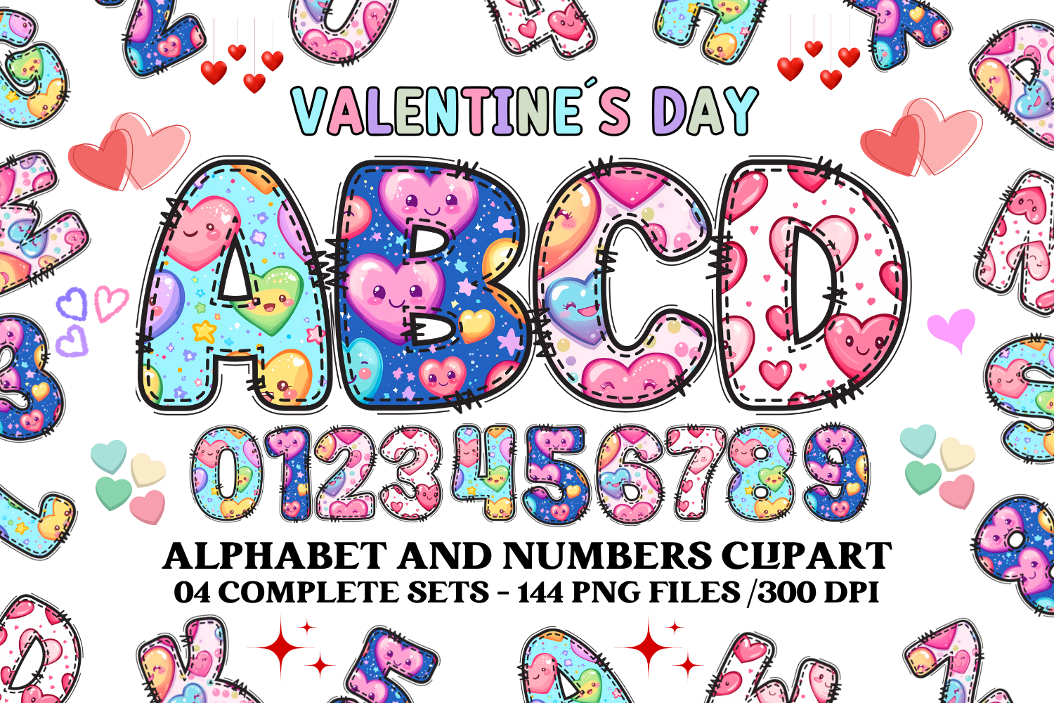 Valentine Alphabet Clip Art, valentines day letters doodle