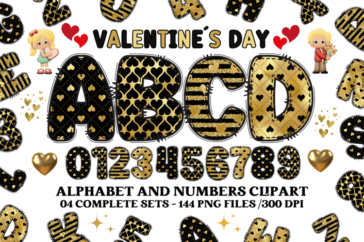 Valentine Alphabet Clip Art, valentines day letters doodle