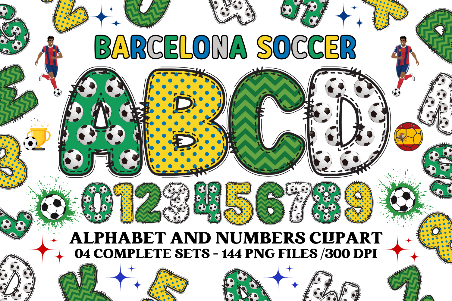 Similar Design Products to Barcelona Soccer Alphabet png clipart, soccer letters doodle