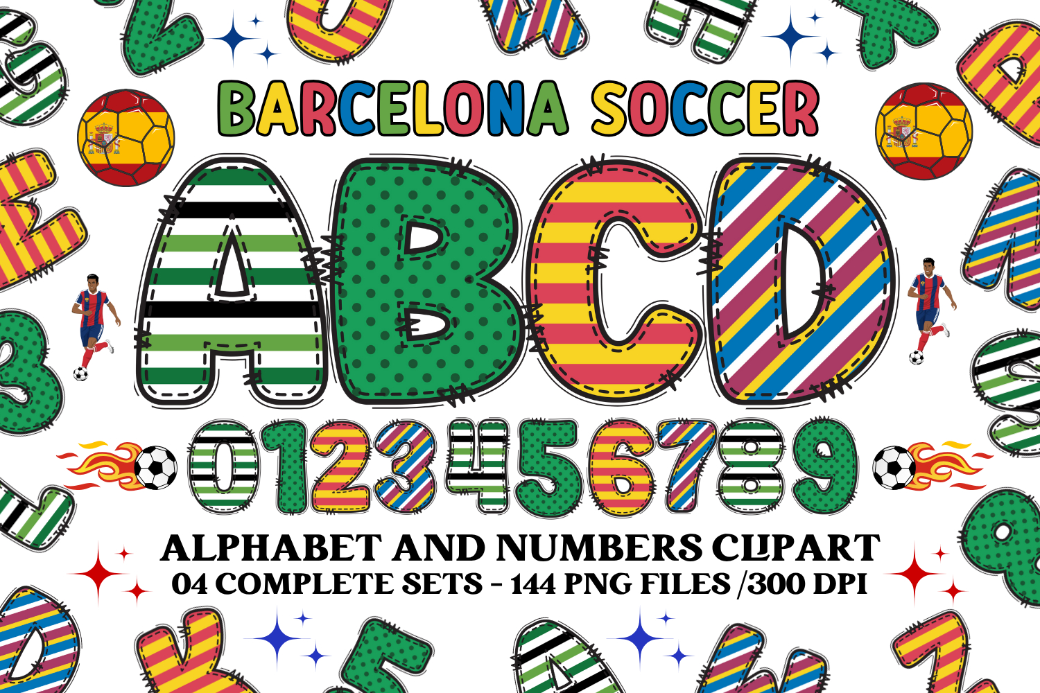 Similar Design Products to Barcelona Soccer Alphabet png clipart, soccer letters doodle