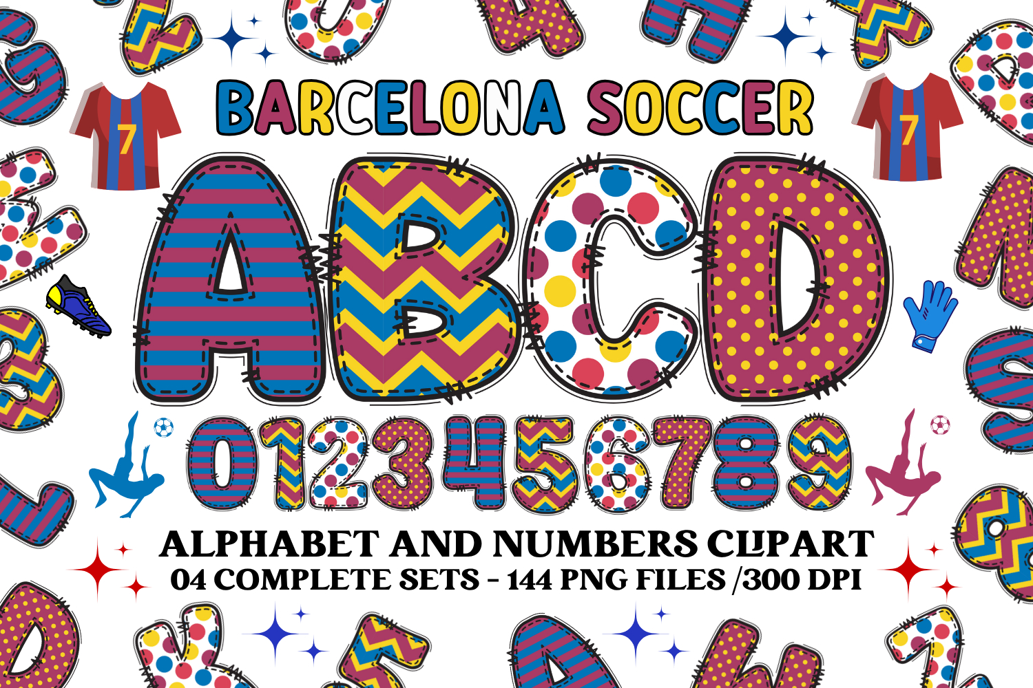 Barcelona Soccer Alphabet png clipart, soccer letters doodle example image 1