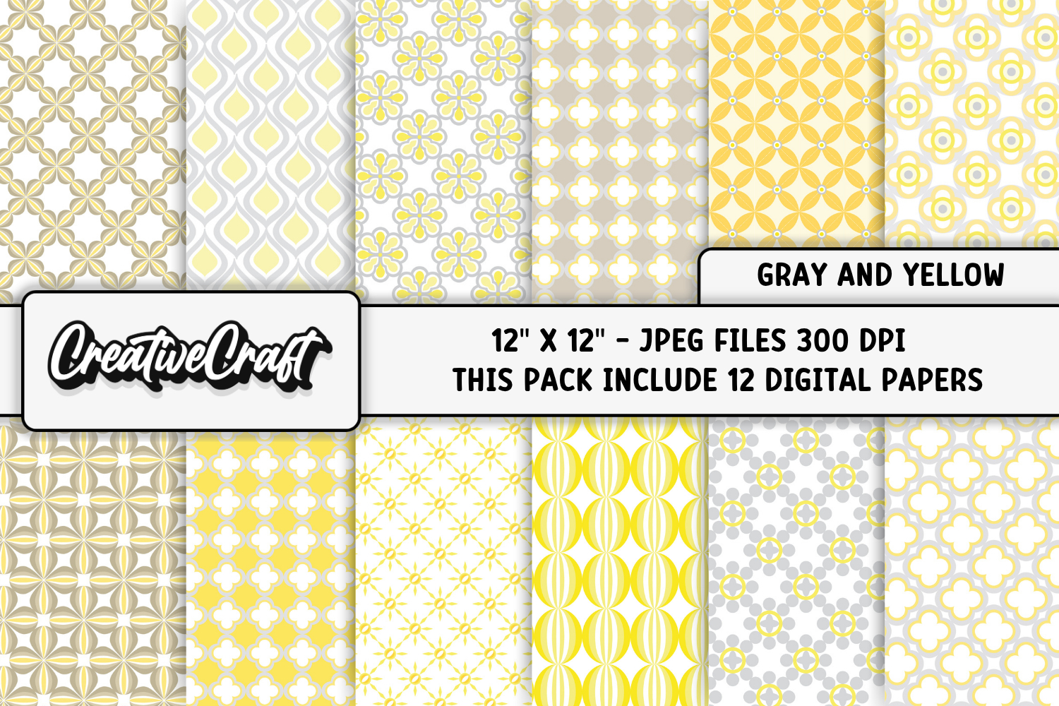 This cute Gray Yellow digital papers set is perfect for all your crafts and projects.