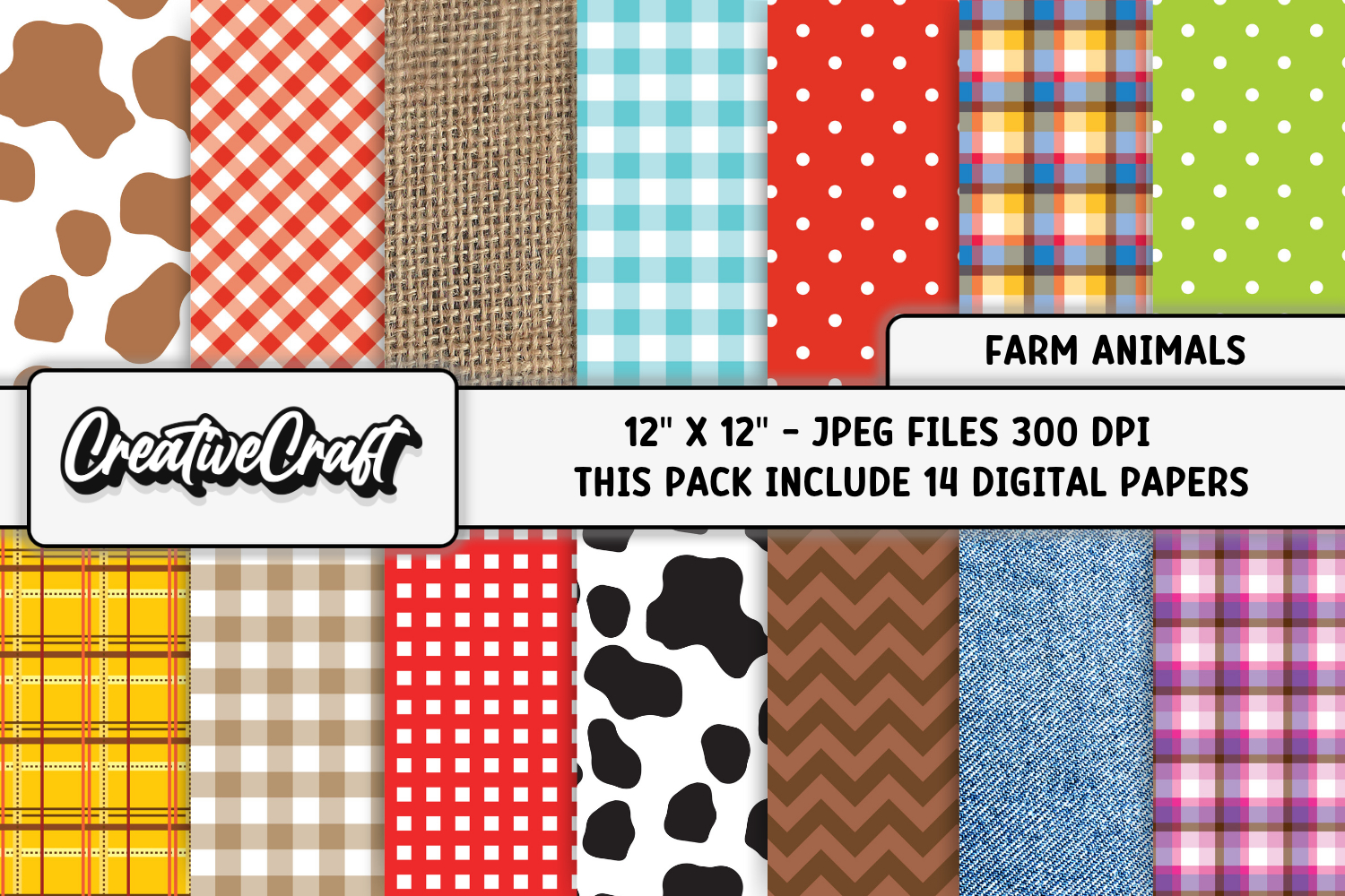 Animals Seamless Patterns Farm Animal Print Cow Plaid Digital Papers Animal Skin Backgrounds Designs Printables Papers Designs