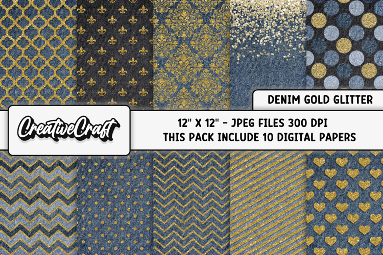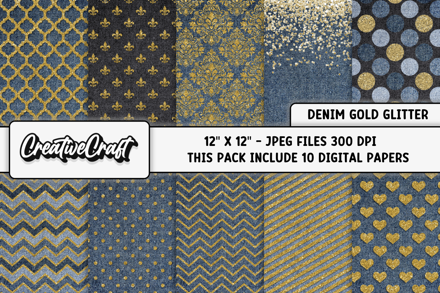 This cute Denim Gold Glitter digital papers set is perfect for all your crafts and projects.