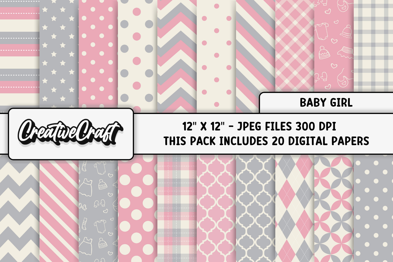 This cute Baby Girl digital papers set is perfect for all your crafts and projects.