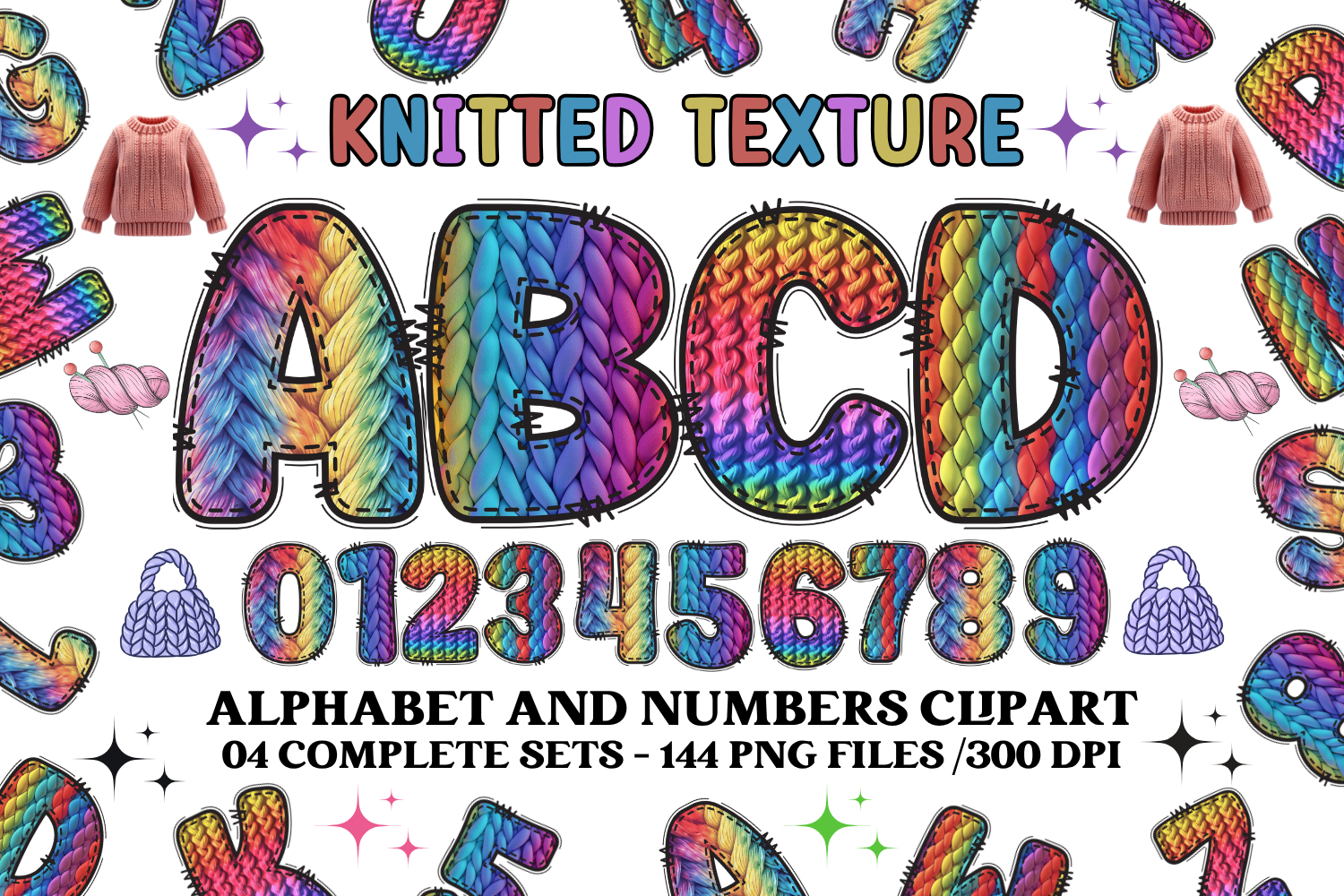 Knitted Alphabet png clipart, knitted texture doodle letters
