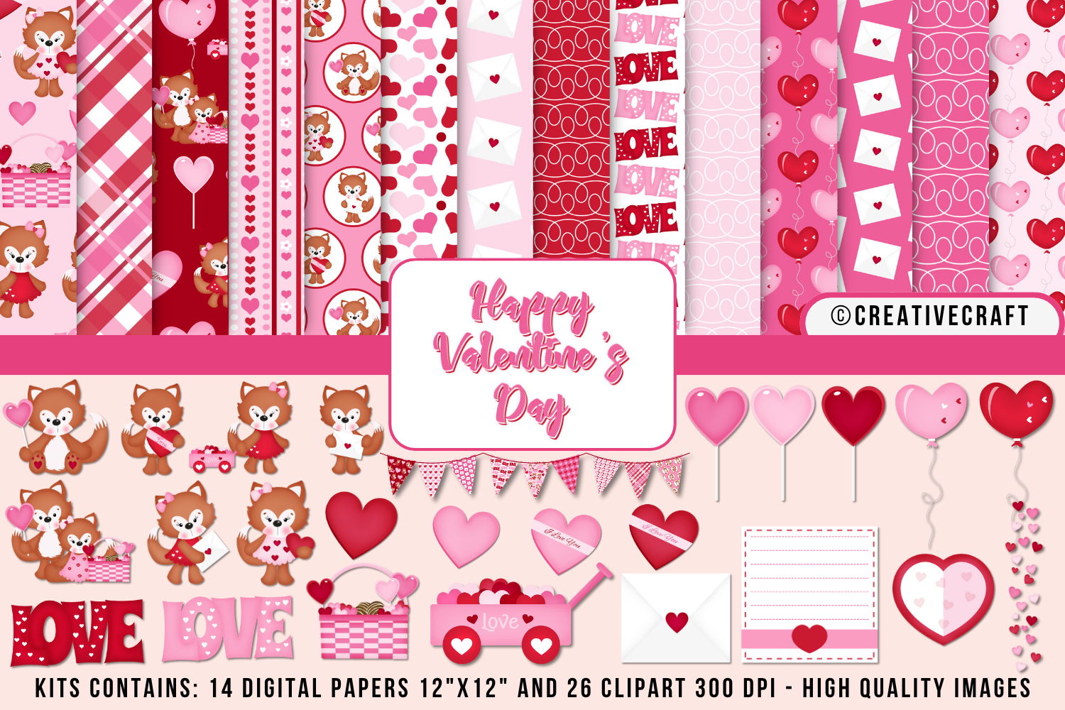 This cute Valentine Day digital papers and clipart set is perfect for all your crafts and projects.