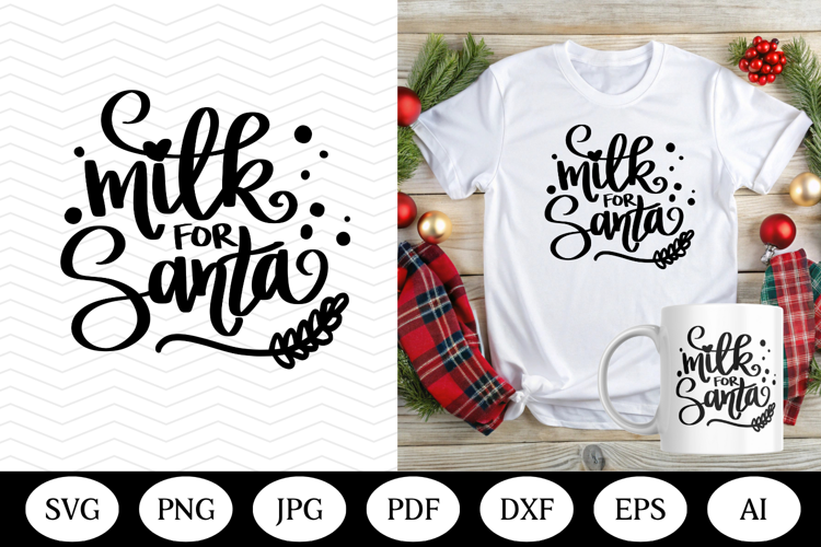 Tshirt Christmas Cricut Cutting File Christmas Quote Png Clipart Svg Design Milk For Santa Sublimation Design Sillhouette Studio