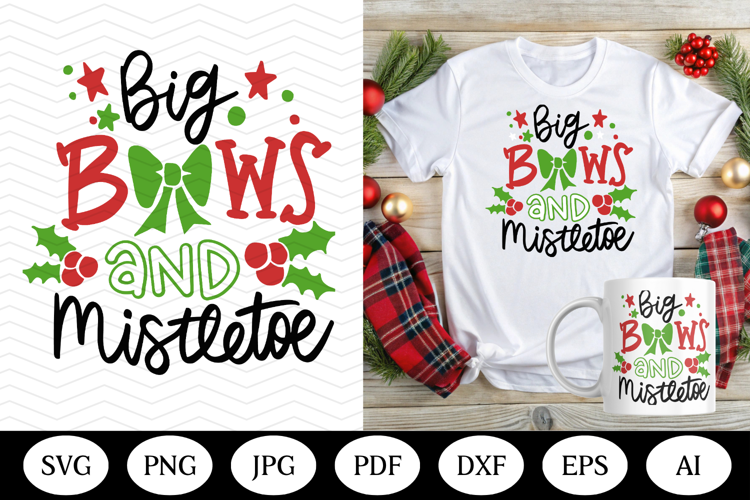 Tshirt Christmas Cricut Cutting File Christmas Quote Png Clipart Svg Design Sublimation Design Sillhouette Studio Big Bows And Mistletoe