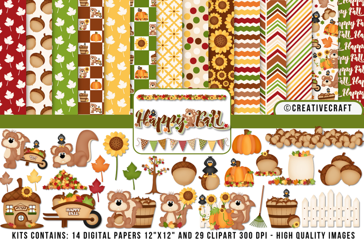 This cute Autumn Fall digital papers and clipart set is perfect for all your crafts and projects.