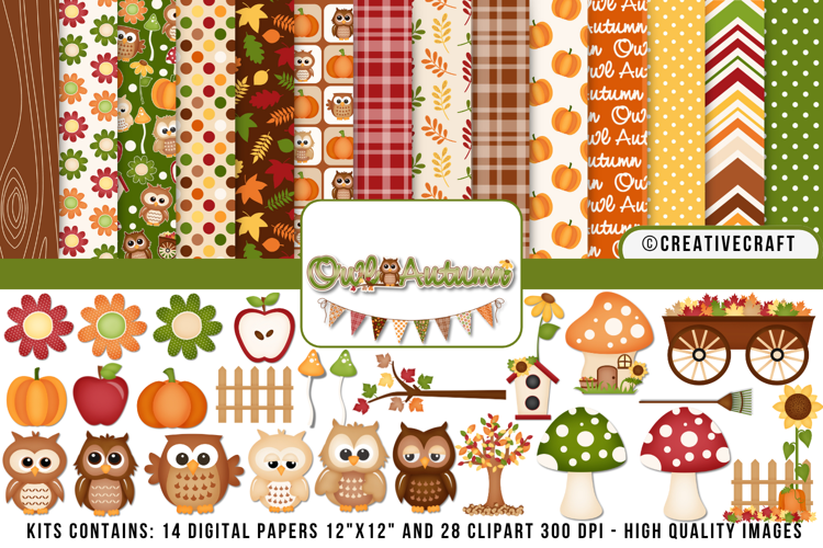 This cute Autumn Fall digital papers and clipart set is perfect for all your crafts and projects.