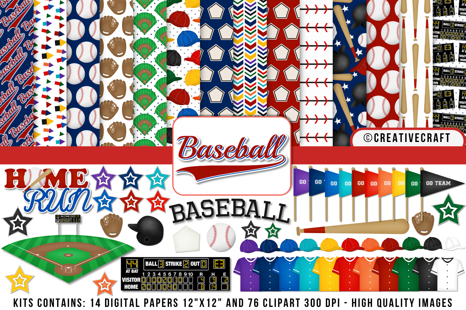 Baseball Digital Paper and Clipart png, Baseball clipart example image 1