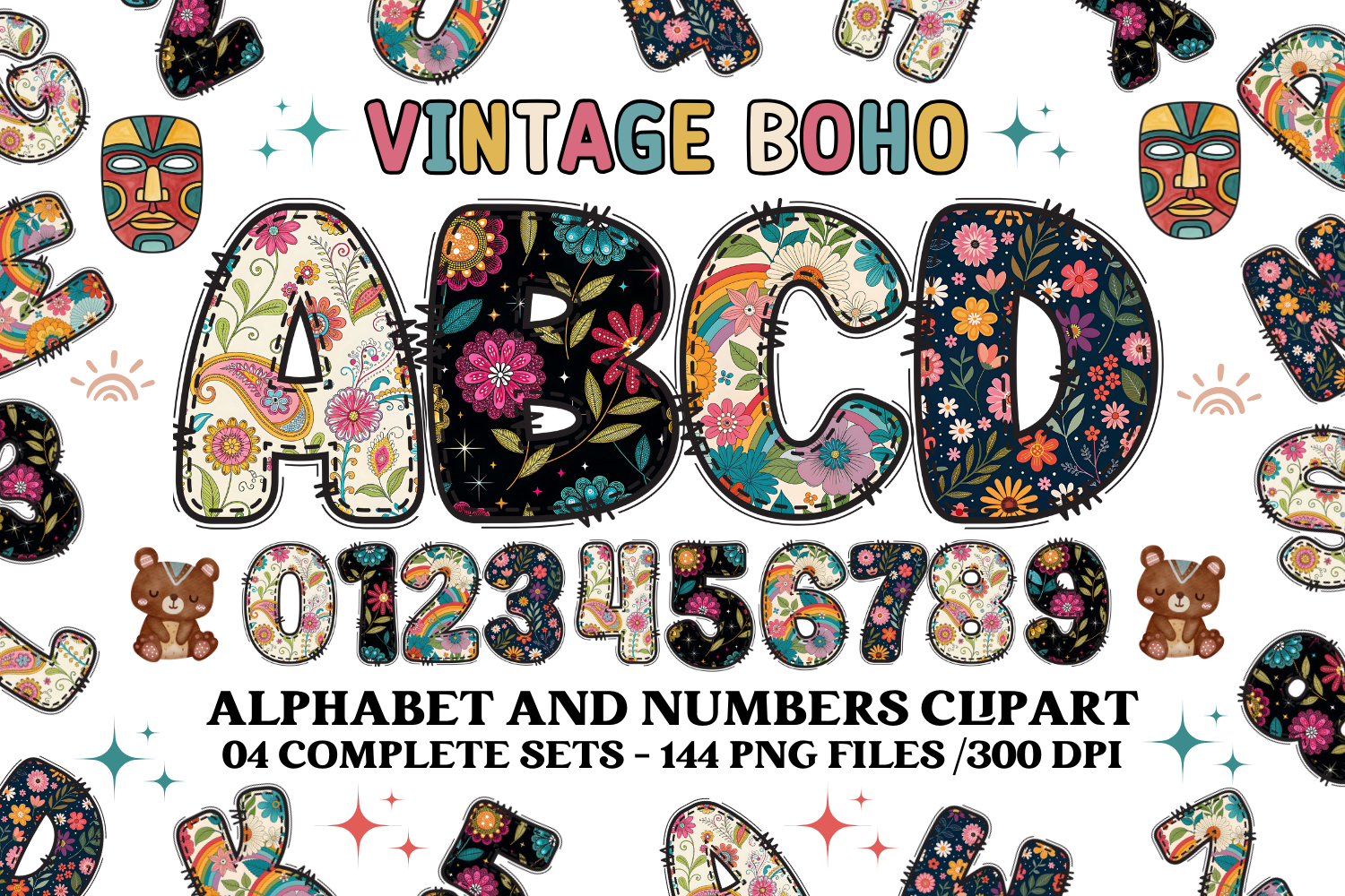 Similar Design Products to Vintage Boho Alphabet png clipart, boho letters doodle