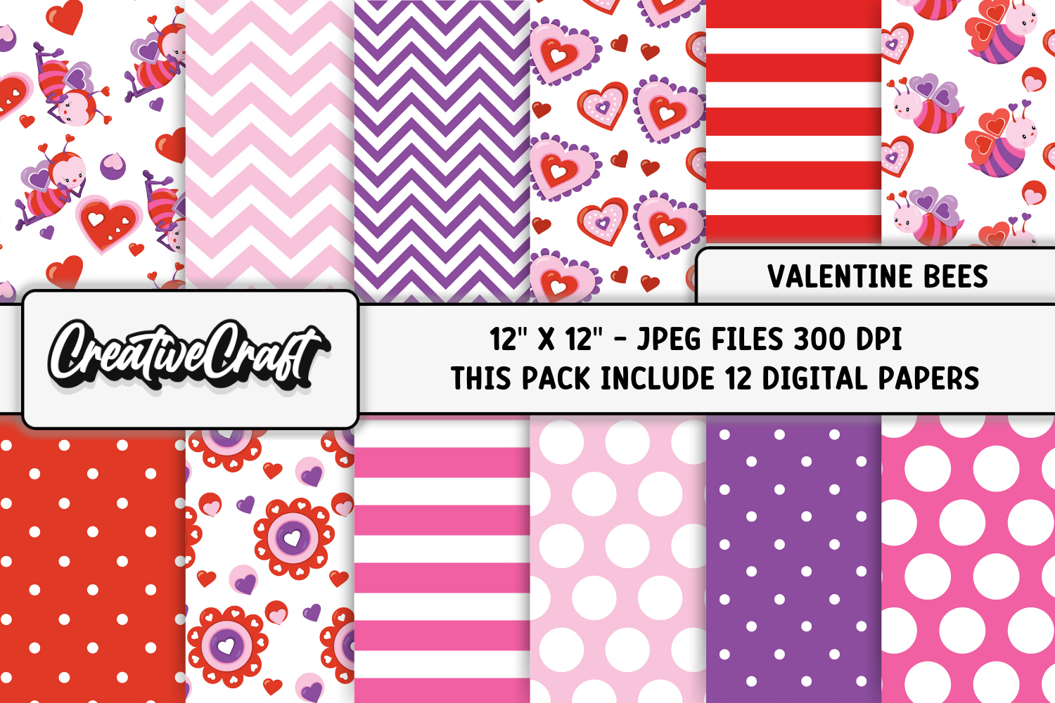 The set contains 12 Valentine Day papers designs.