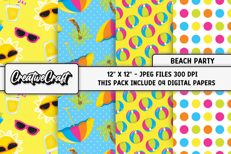 Beach Party Digital Paper, summer backgrounds illustrations
