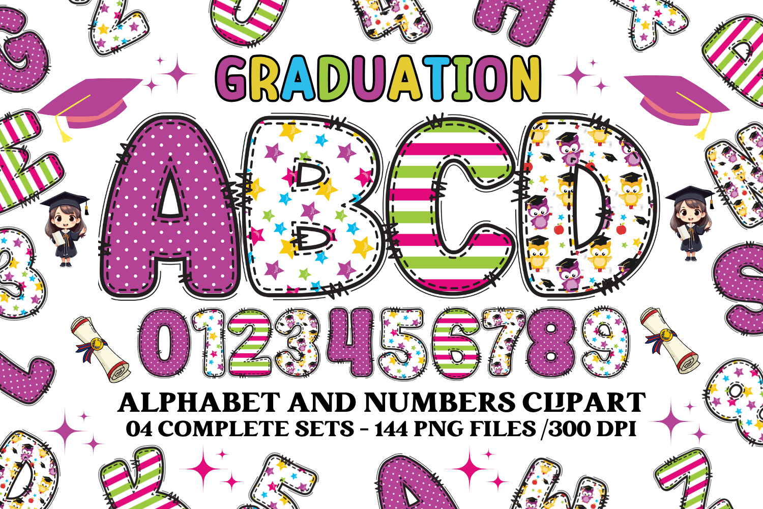 Graduation Alphabet png clipart, graduation letters doodle example image 1