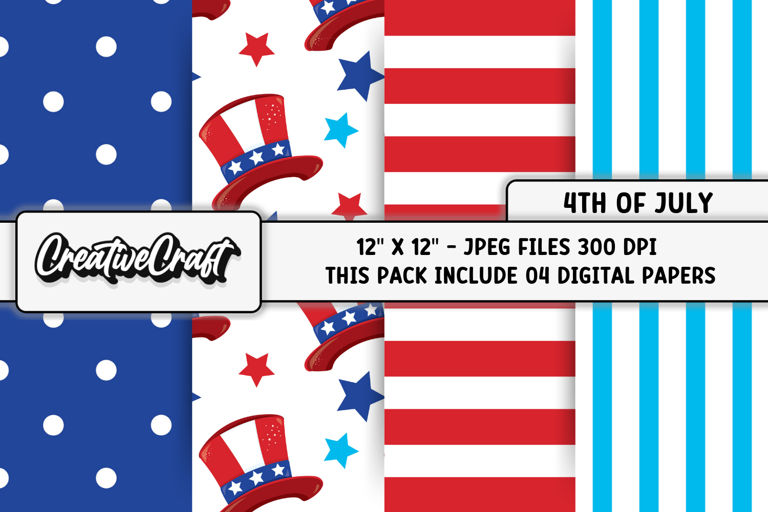The set contains 4th of July papers designs.