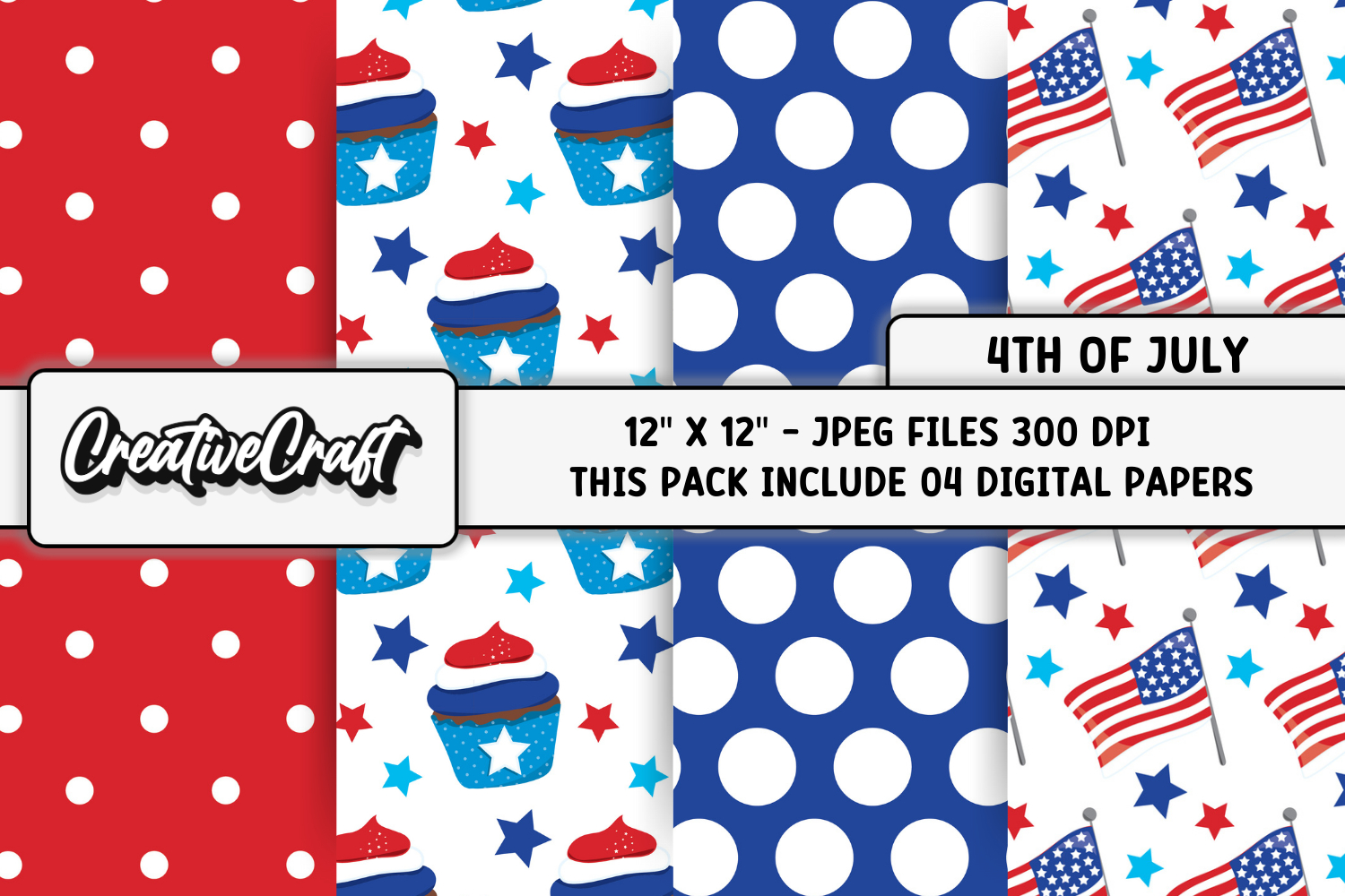 The set contains 4th of July papers designs.