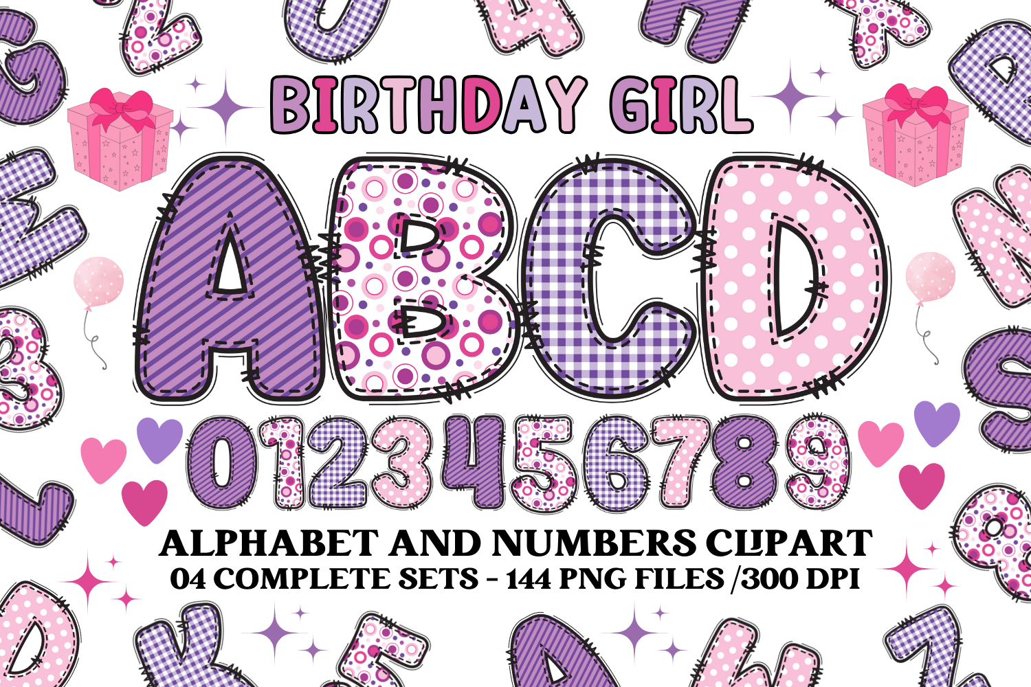 Birthday Girl Alphabet, birthday girl letters doodle clipart