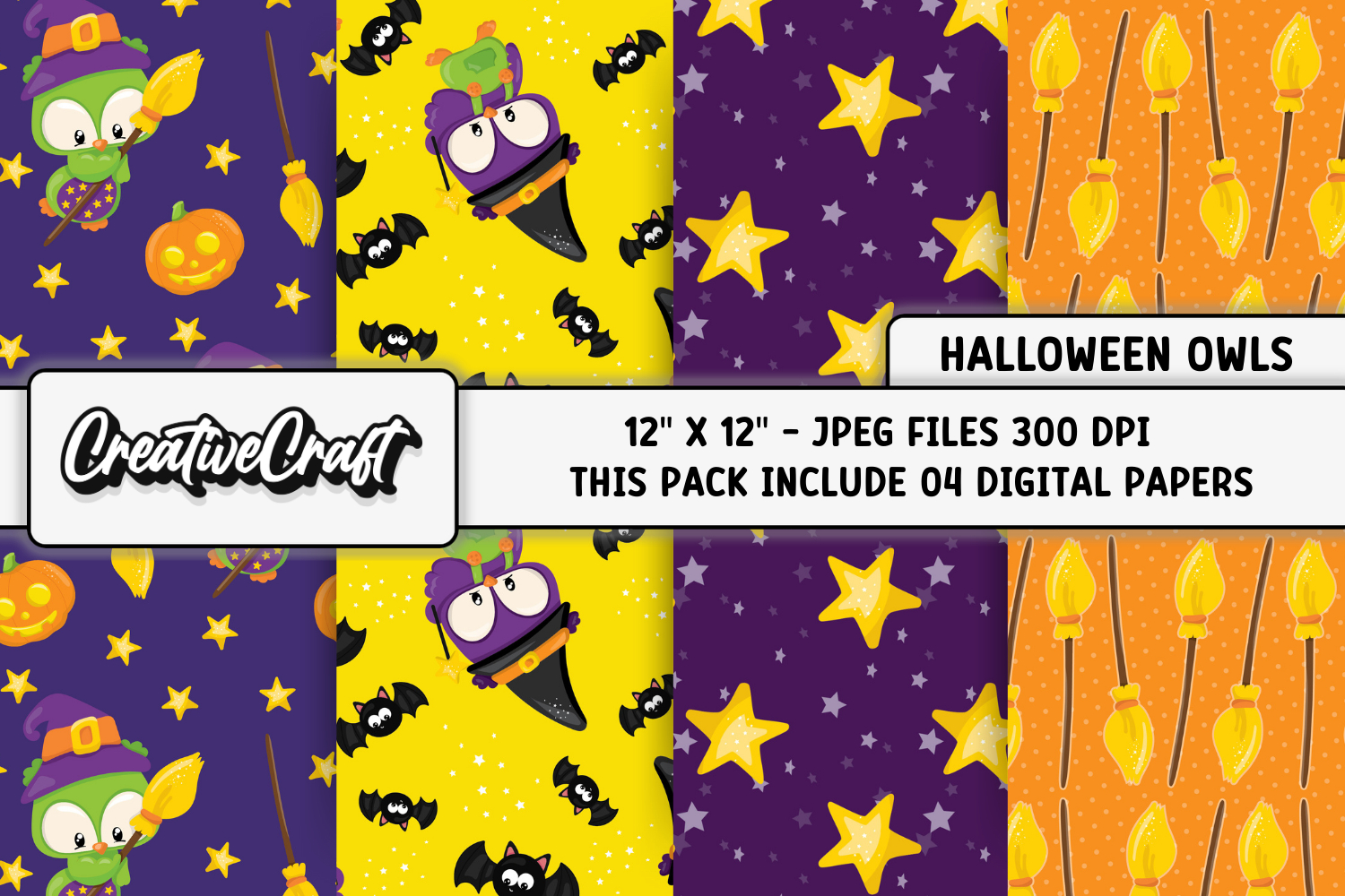 The set contains 12 Halloween papers designs.