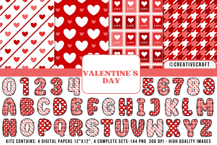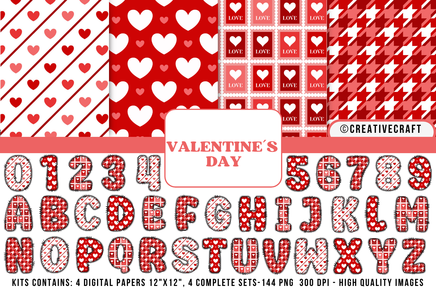 Similar Design Products to Valentines Day Digital Papers, valentines day doodle letters