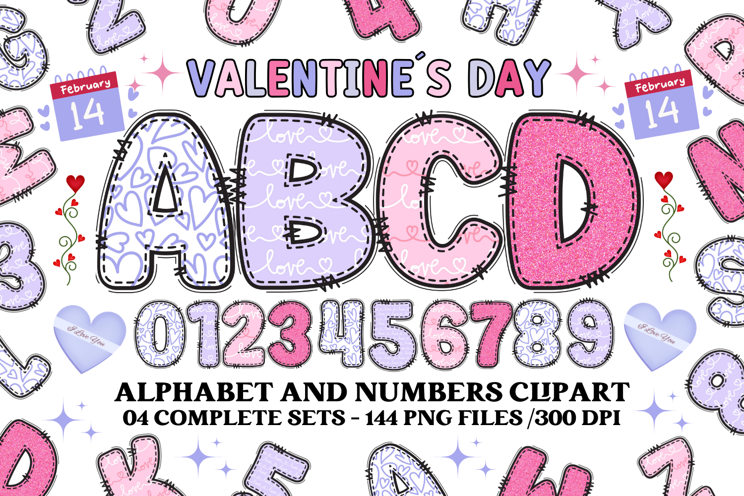 Valentine Alphabet Clip Art, valentines day letters doodle