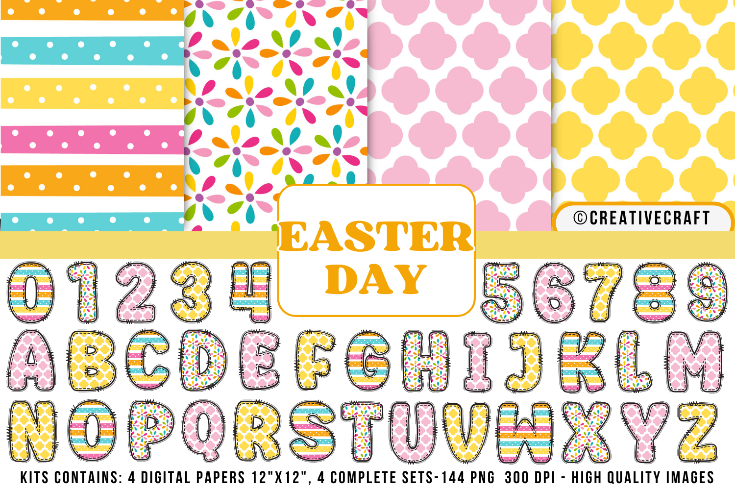 Easter Day Digital Papers, easter day doodle letters example image 1
