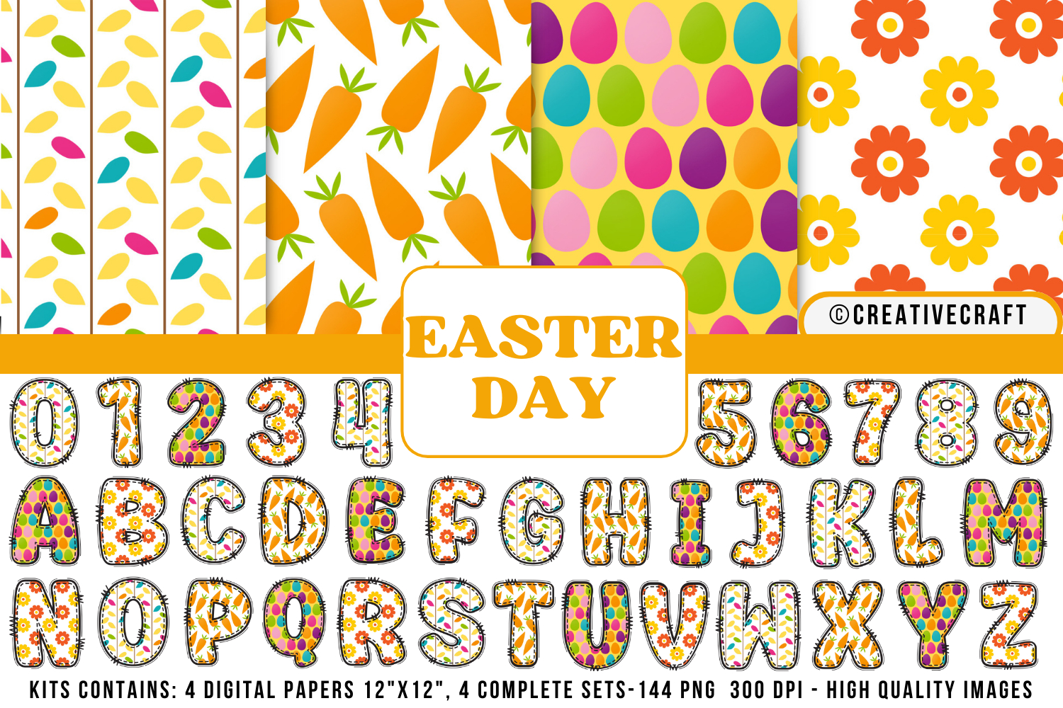Easter Day Digital Papers, easter day doodle letters example image 1
