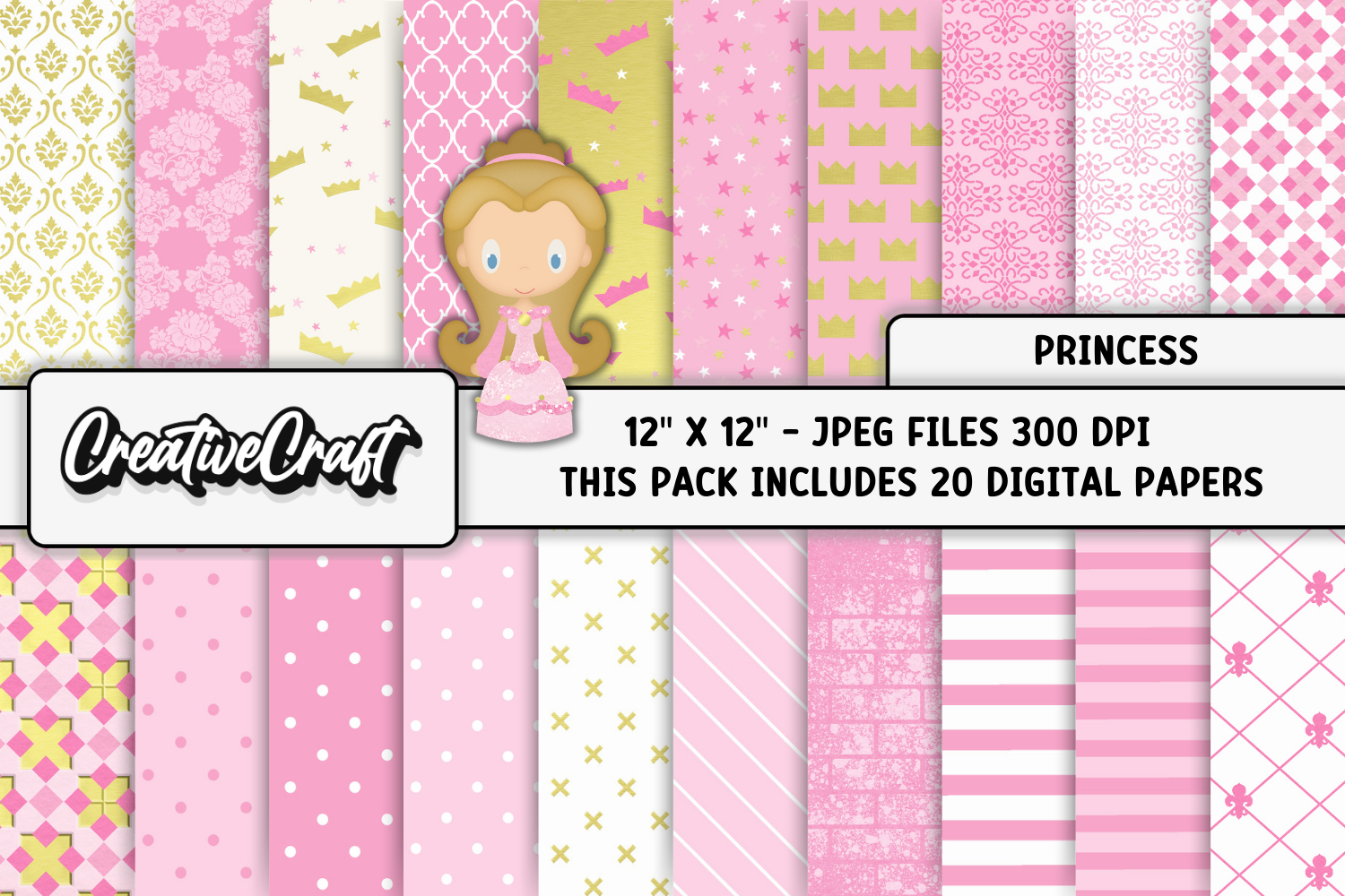 This cute Princess digital papers set is perfect for all your crafts and projects.