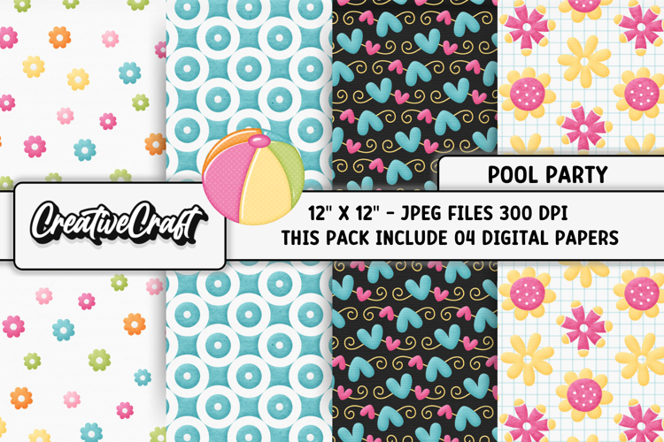 This cute Pool Party digital papers set is perfect for all your crafts and projects.