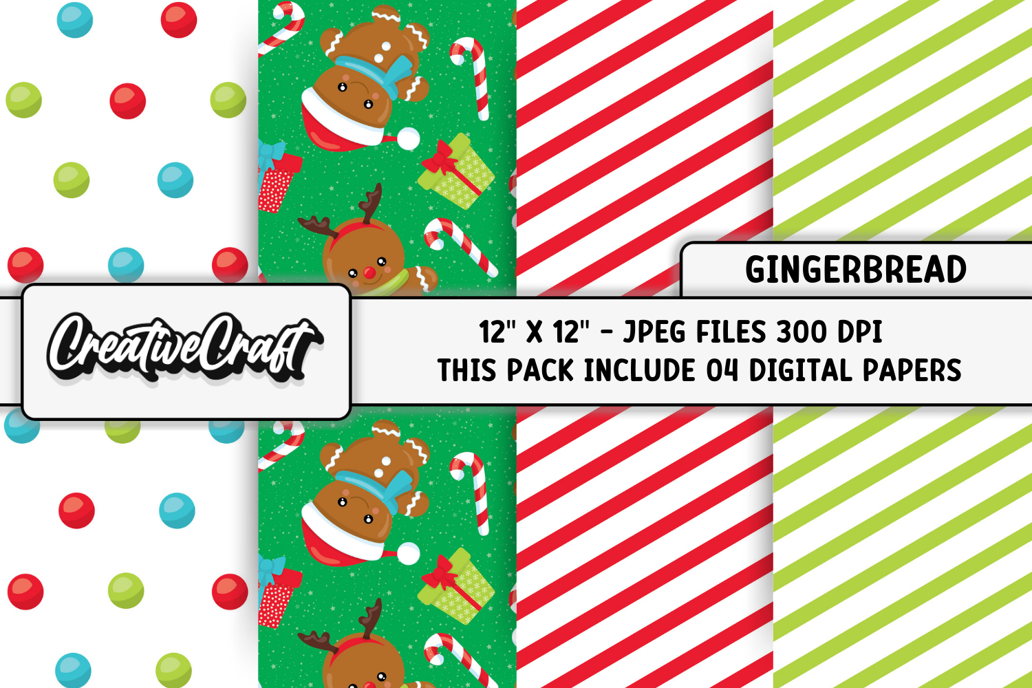 Christmas Digital Paper, gingerbread christmas digital paper example image 1