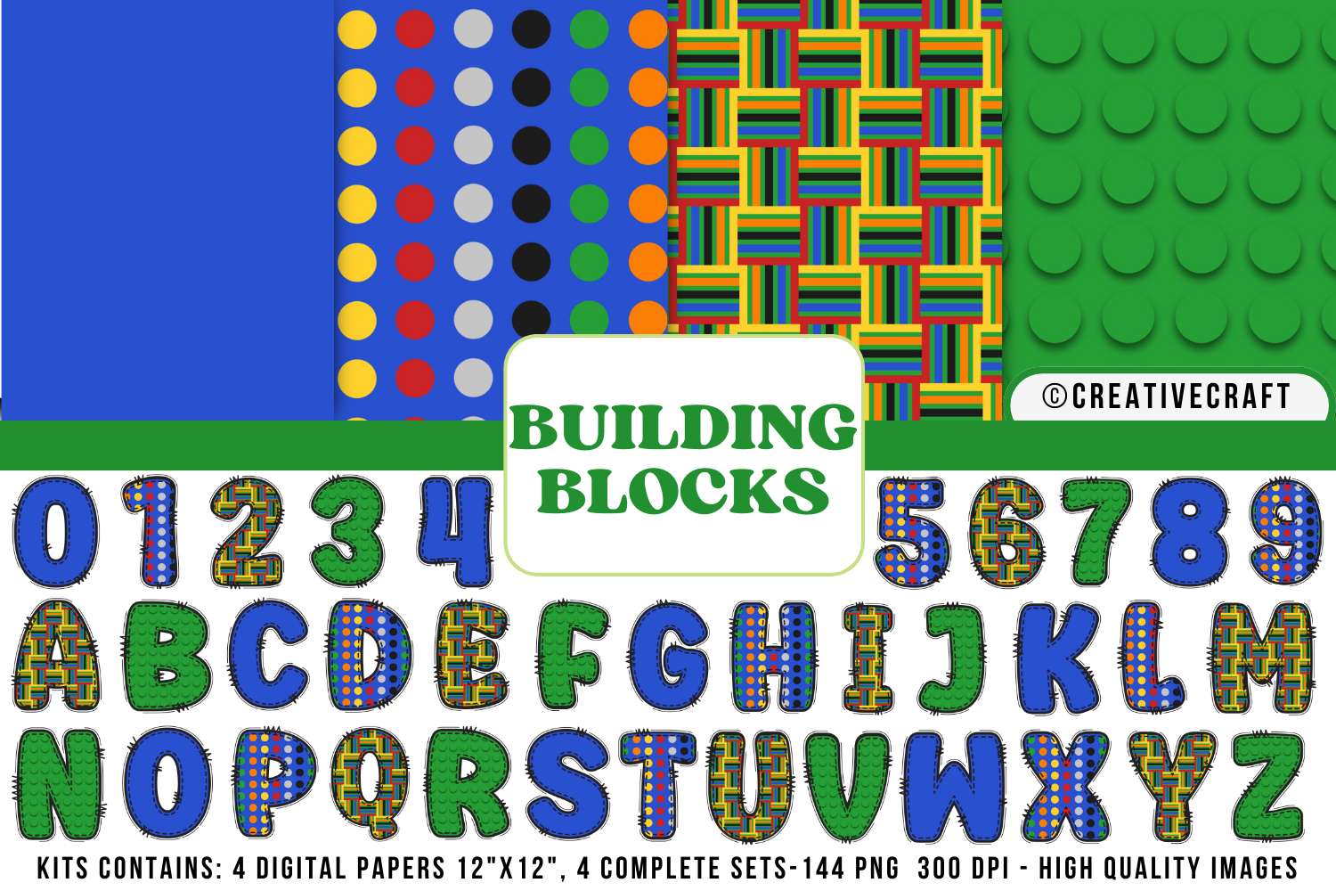 Building Blocks Digital Papers, building doodle letters