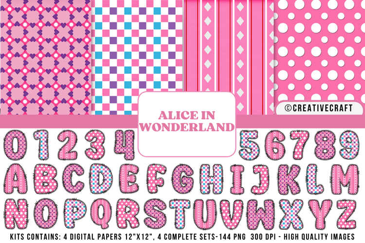 Similar Design Products to Alice in Wonderland Digital Papers, Alice doodle letters