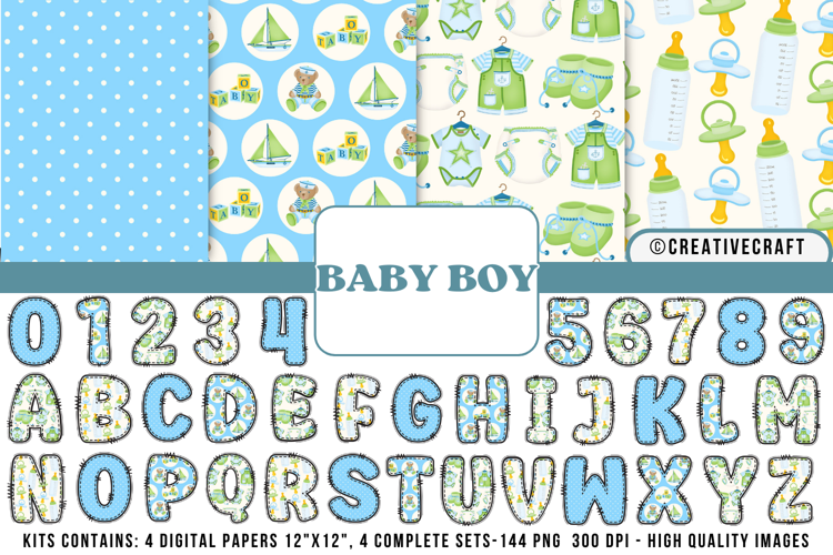 Similar Design Products to Baby Boy Digital Papers, Baby Boy doodle letters