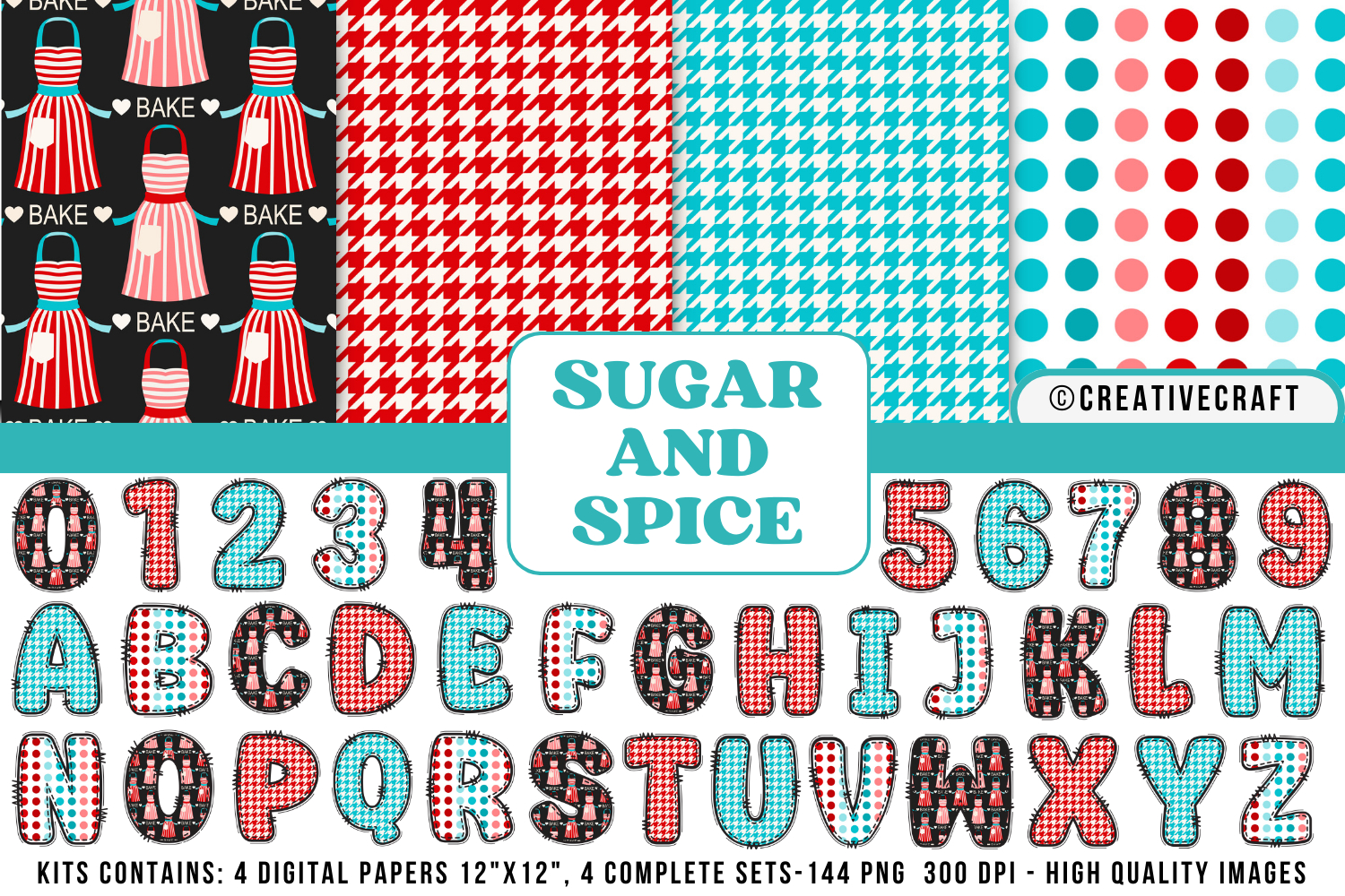 Similar Design Products to Sugar and Spice Digital Papers, kitchen doodle letters