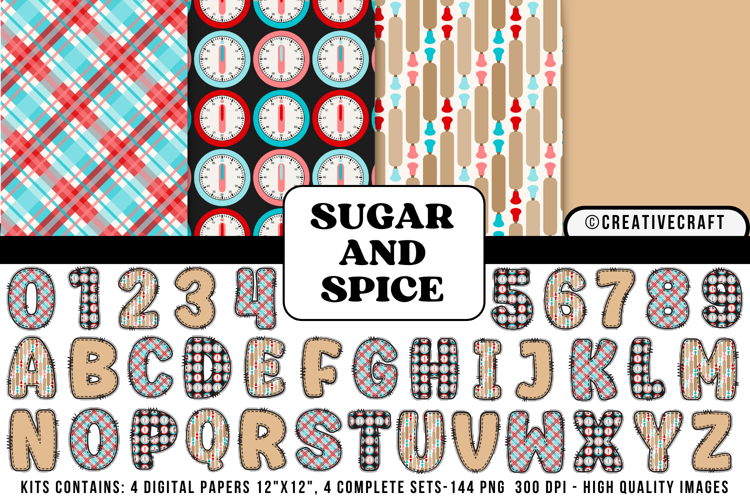 Similar Design Products to Sugar and Spice Digital Papers, kitchen doodle letters