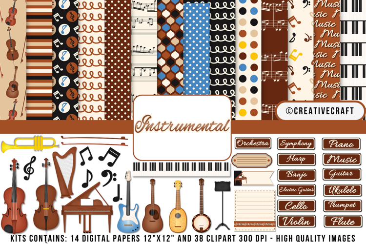 This cute Music Instrument digital papers and clipart set is perfect for all your crafts and projects.
