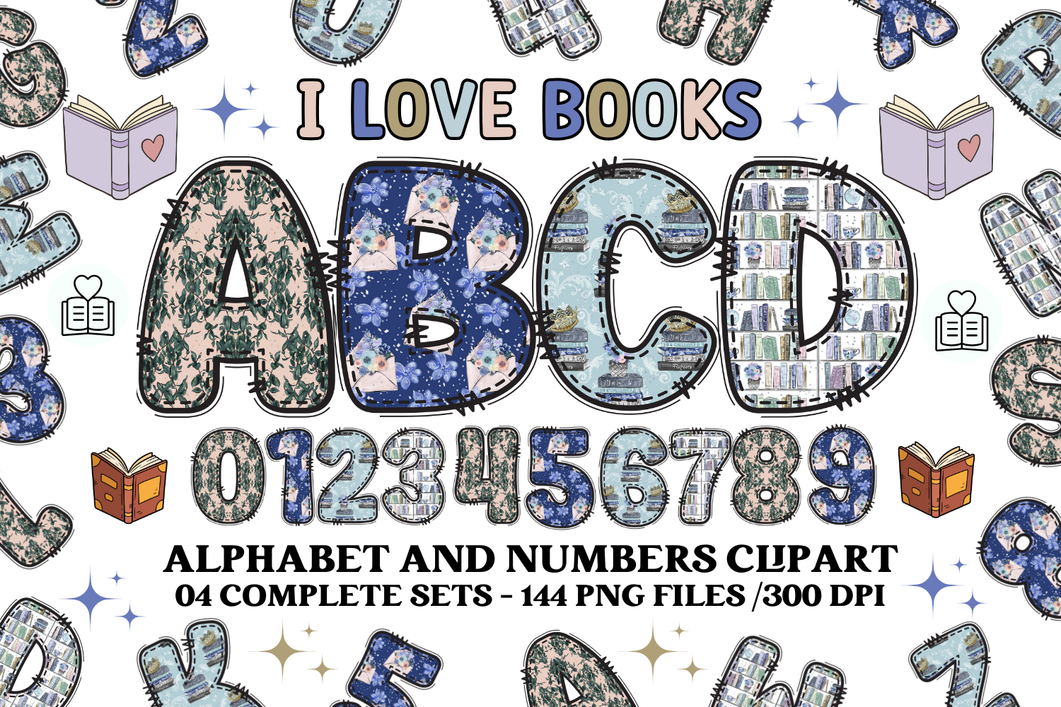 I Love Books Alphabet Clip Art - Book Lover letters doodle