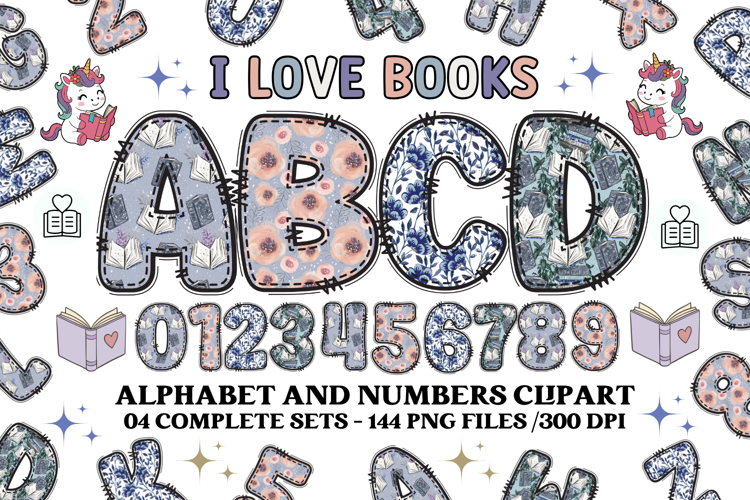 I Love Books Alphabet Clip Art - Book Lover letters doodle