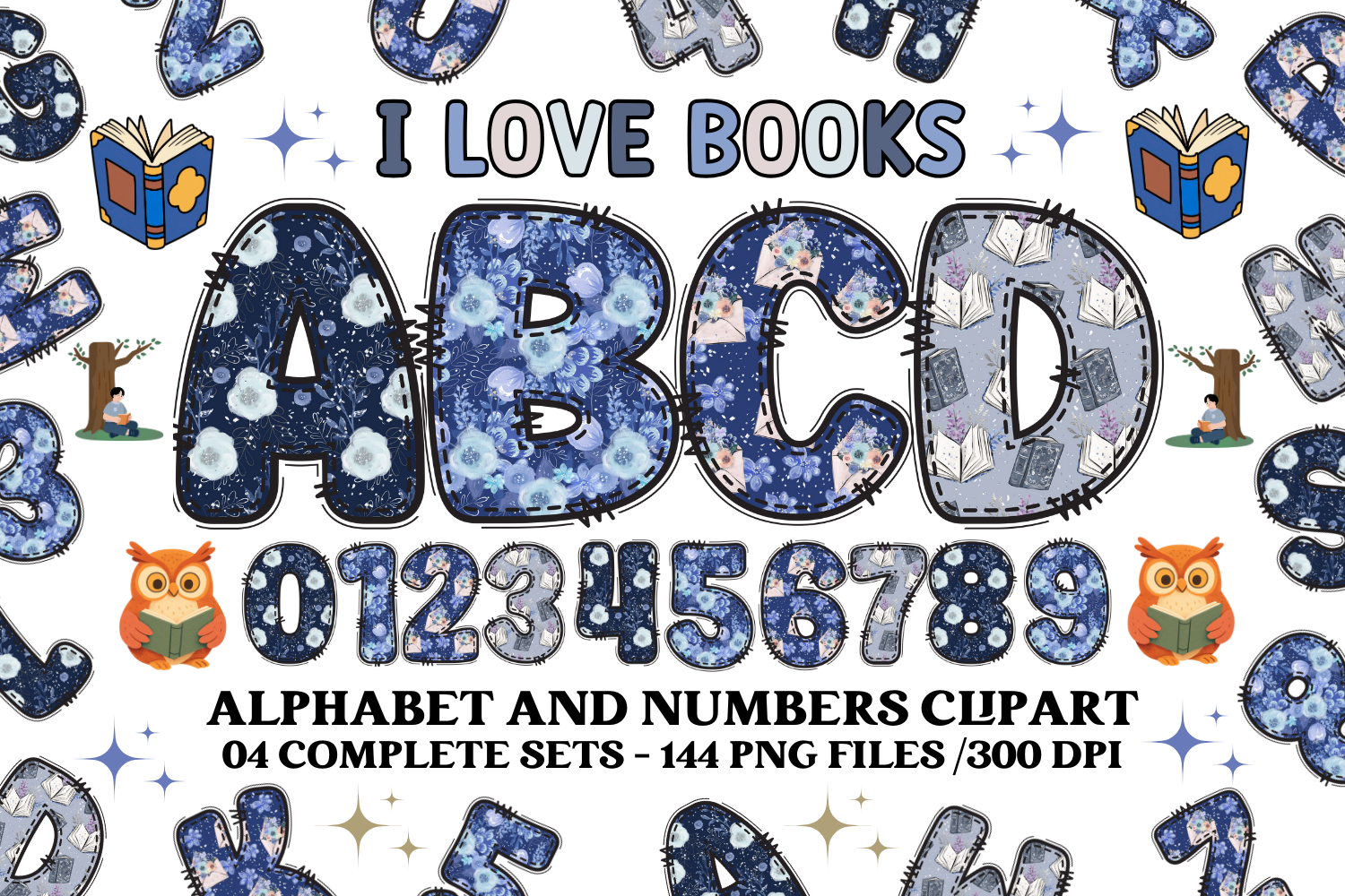 I Love Books Alphabet Clip Art - Book Lover letters doodle