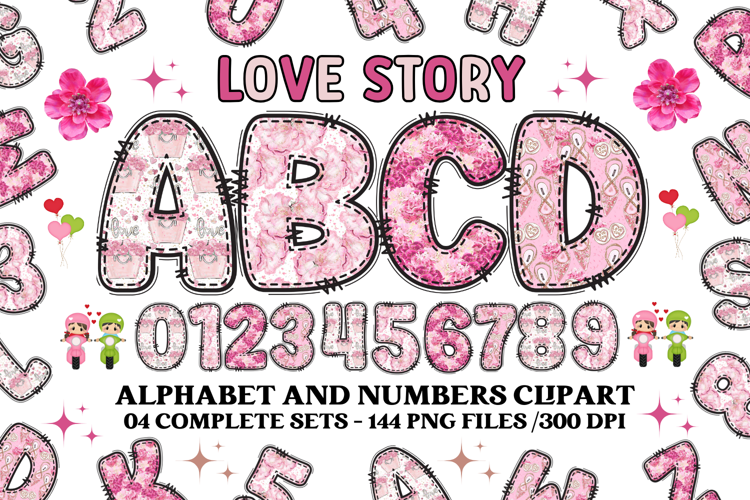 Love Story Alphabet & Numbers Clipart - PNG 300 DPI