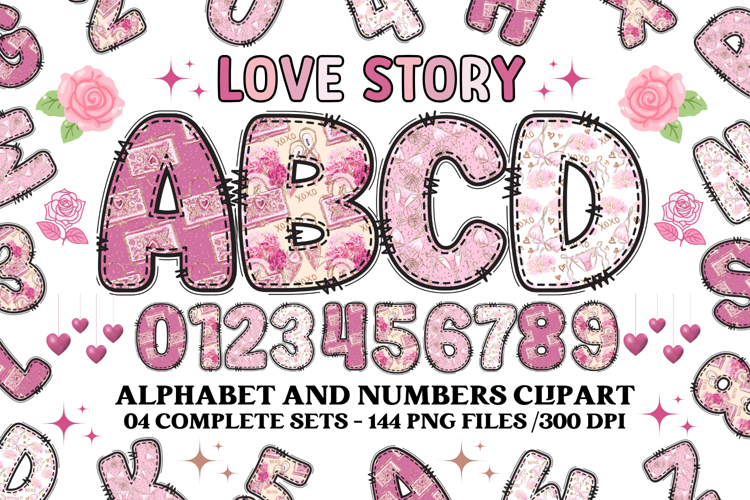 Love Story Alphabet & Numbers Clipart - PNG 300 DPI