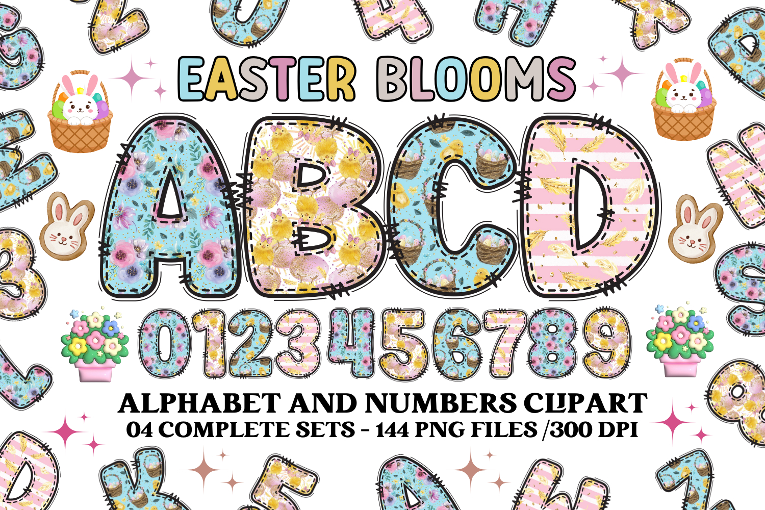Easter Blooms Alphabet & Numbers Clipart PNG Set